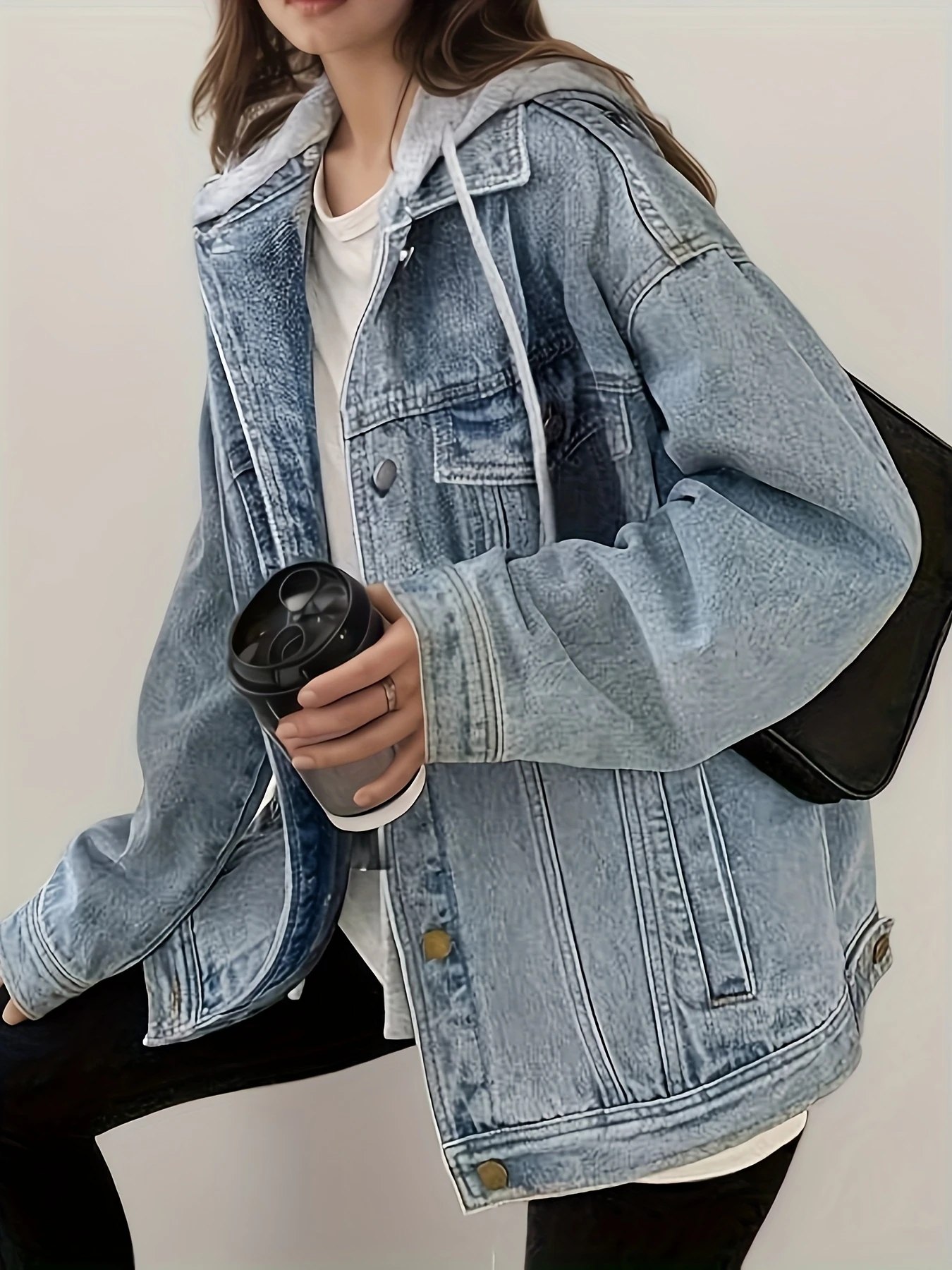 Women's Hooded Denim Jacket, Oversized Retro Denim Jacket, Elastic And Loose, Comfortable And Lightweight